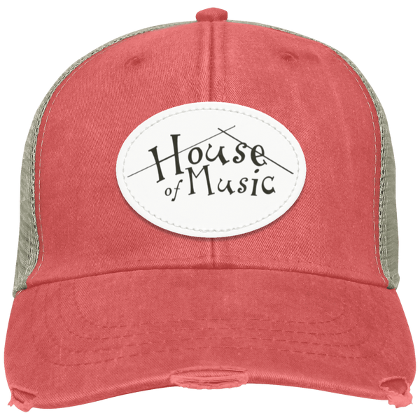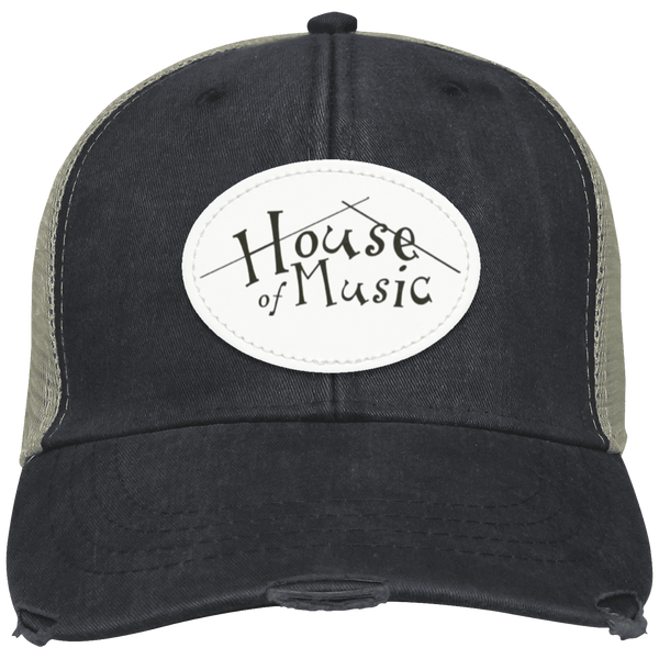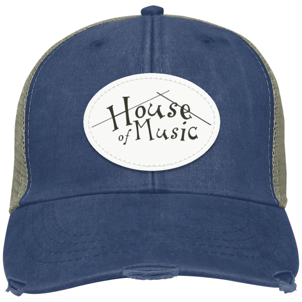 • Distressed torn visor, cotton twill sweatband; four-row stitching on bill